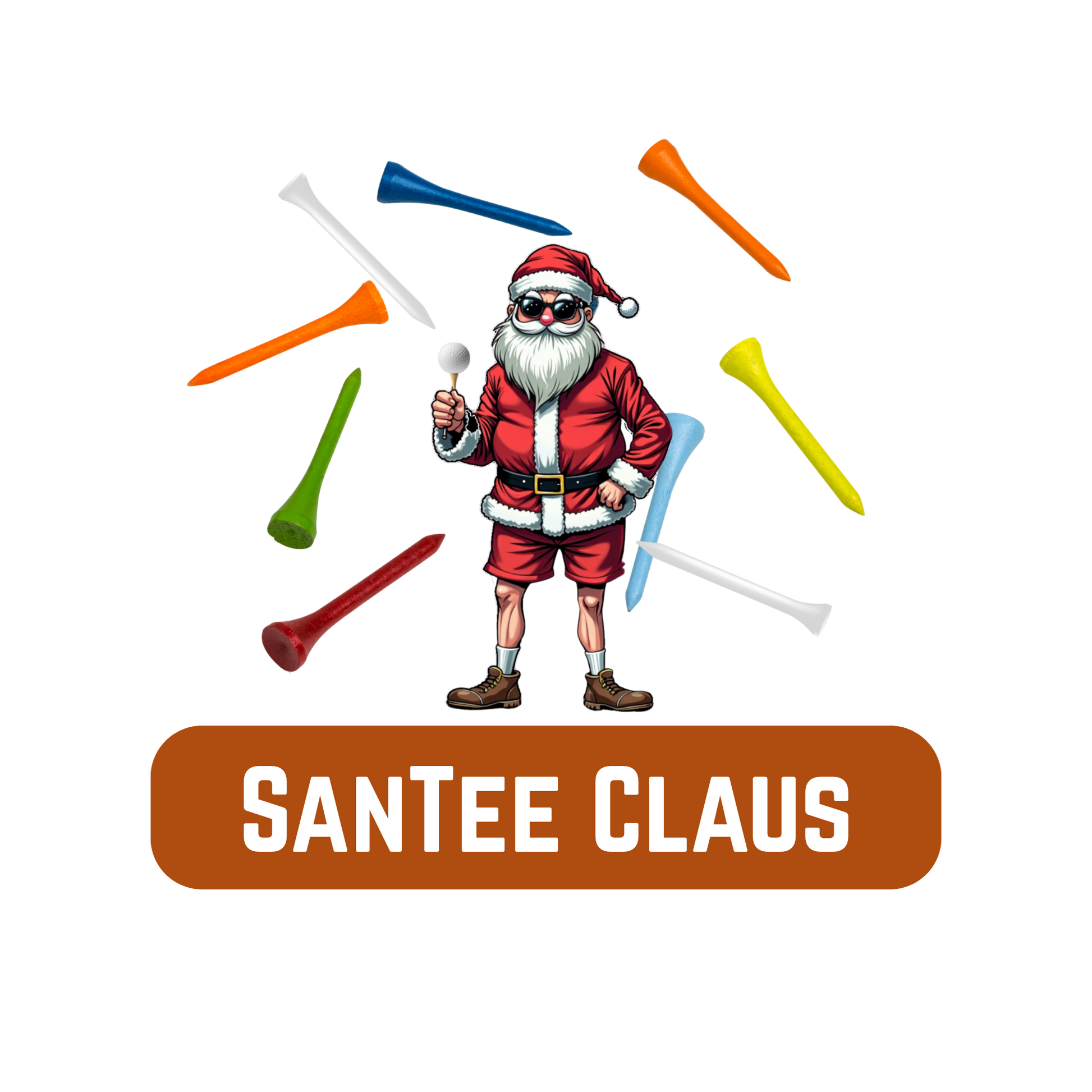 SanTee Claus golf tees have an imprint of the jolly elf on the cup of the golf tee and another on the side, with its name of SanTee Claus imprinted on the long side of the tee. As it turns out, SanTee is a distant cousin of Santa. While Santa gives provides gifts during Christmas, Santee gives golf gifts all year round. 50 Tees inside a pillow box. Each tee is 2.75 inches and made of bamboo.